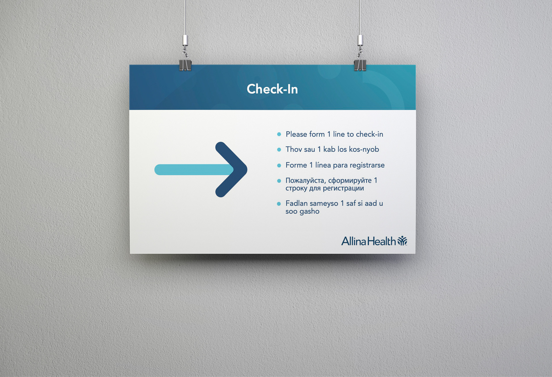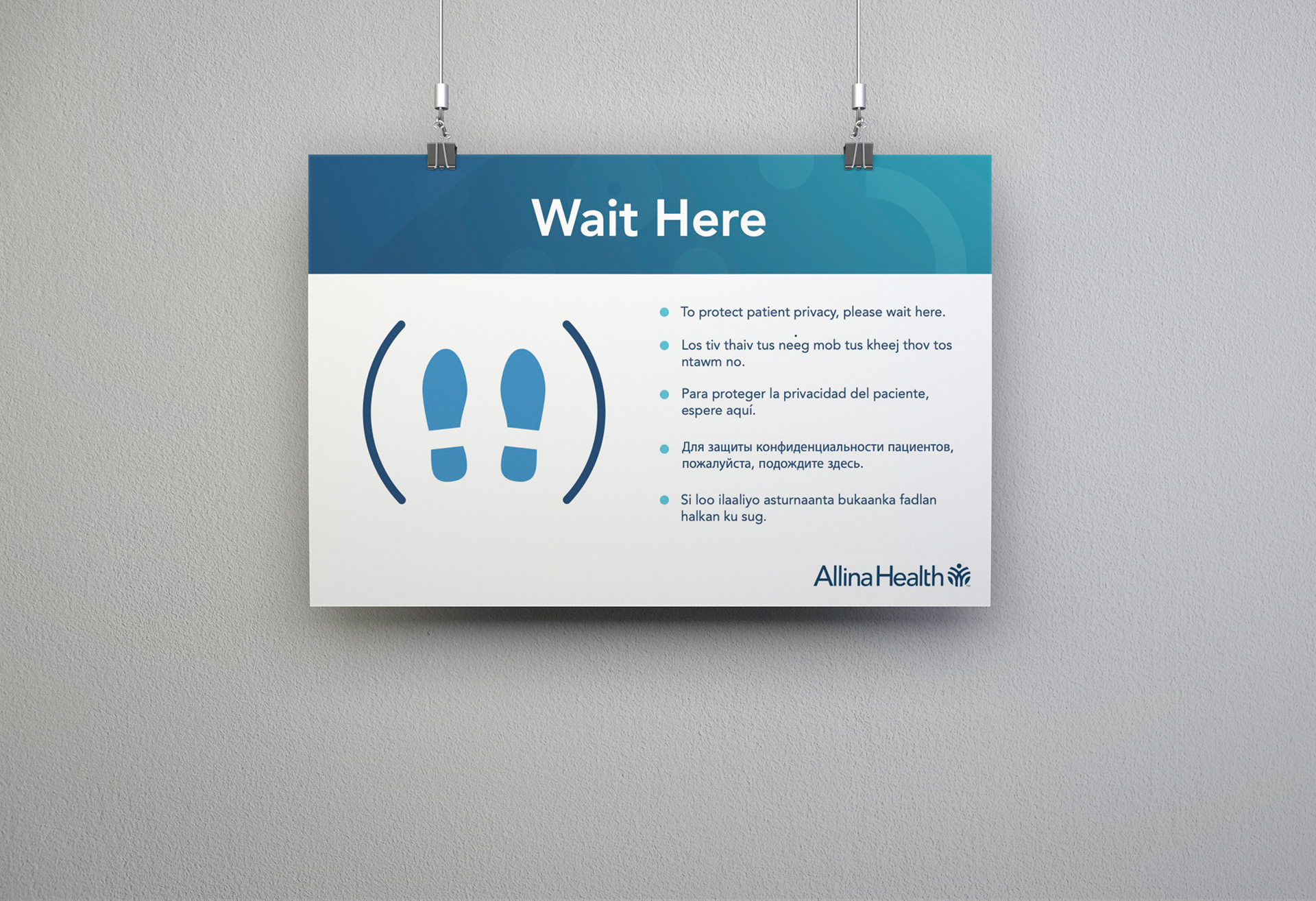 Signage designed for Allina Health. Focused on layout and following brand guidelines to create signage that was readable and easy to navigate for patients as well as helping create a welcoming environment.